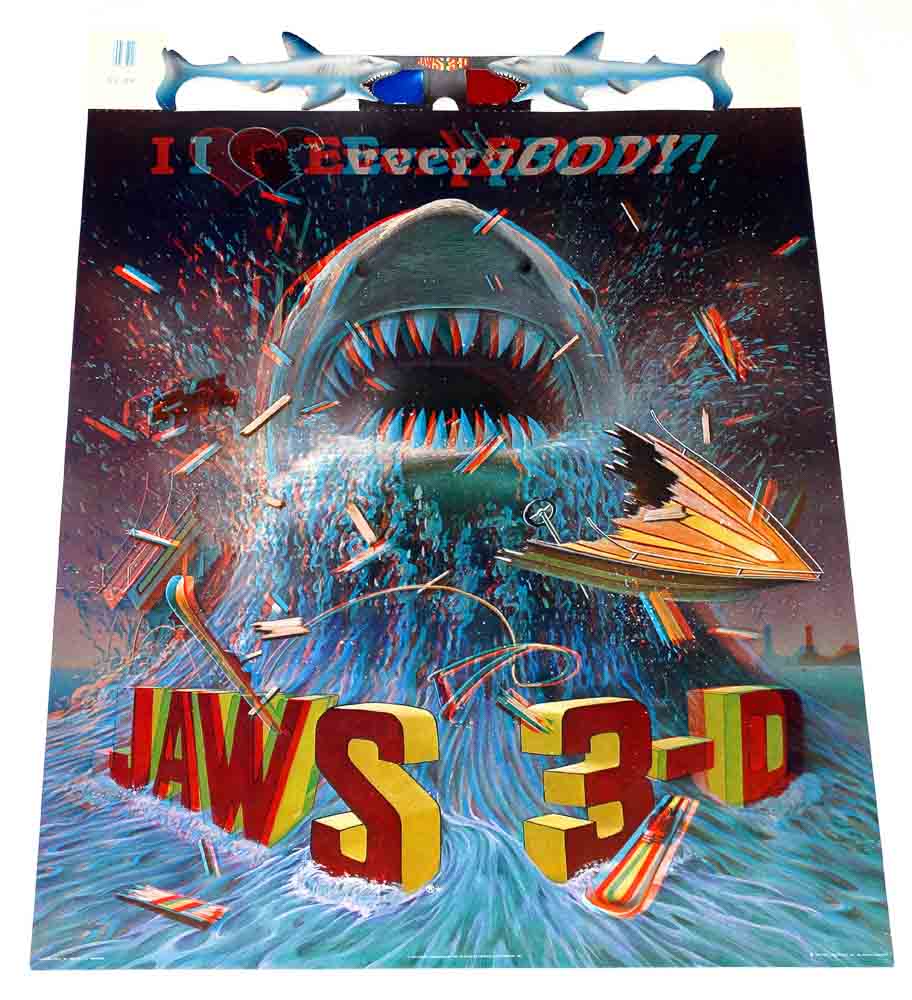 Jaws 3D Poster w/Glasses Still Attached Rare 1983 “I Love Everybody” Hallmark
